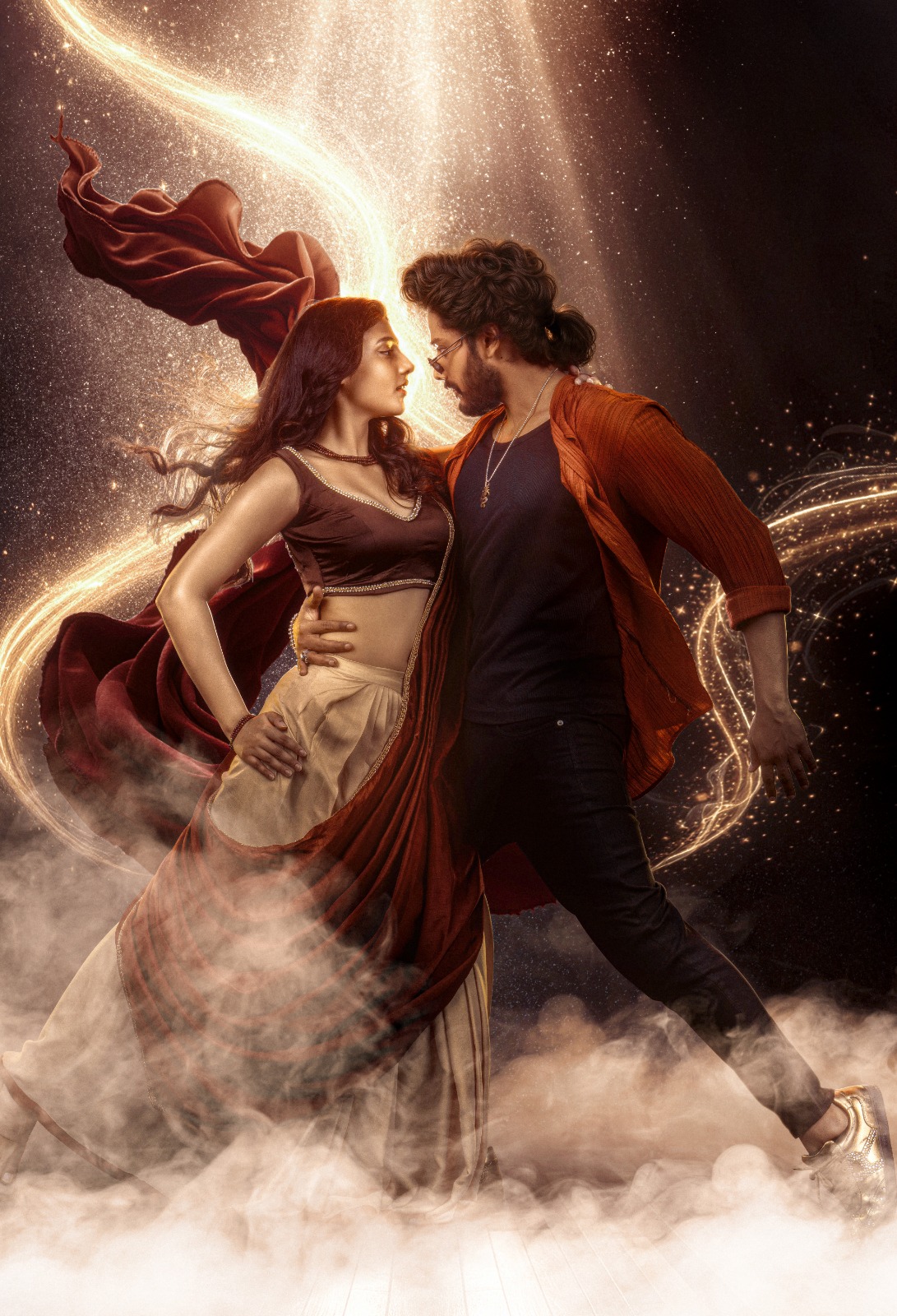 தேஜா சஜ்ஜா கரடு முரடான மற்றும் ஸ்டைலான தோற்றத்தில் ஒரு நவ நாகரிகமான உடையில் வலுவான வீரமிக்க ஜோதி போன்ற ஒளியை வெளிப்படுத்துகிறார். ரித்திகா நாயக் பிரமிக்க வைக்கும் தோற்றத்தில் தேஜா சஜ்ஜாவுடன் ஒரு தீவிரமான தருணத்தில் தோன்றுகிறார். அவர்களுக்கு பின்னால் சூழலும் தங்கத்தினாலான ஆற்றல் மிக்க ஒரு மாயாஜால பாதையை உருவாக்குகிறது. இது ‘மிராய்’ படத்தின் புராண மற்றும் கற்பனை உலகத்துடன் பொருந்தி சென்று, புதிதாக வேறொரு உலகத்தை காட்சிப்படுத்துகிறது.