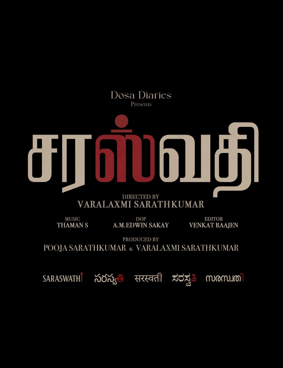 இந்த சிறப்பான துவக்கத்தில்,“சரஸ்வதி” என்ற படத்தின் மூலம், வரலட்சுமி சரத்குமார் இயக்குநராக அறிமுகமாகிறார். இப்படத்தில் வரலட்சுமி சரத்குமார் முதன்மை கதாபத்திரத்தில் நடிக்க பிரபல நட்சத்திரங்கள் பிரகாஷ் ராஜ், பிரியாமணி, நவின் சந்திரா ஆகியோர் நடிக்கின்றனர்.