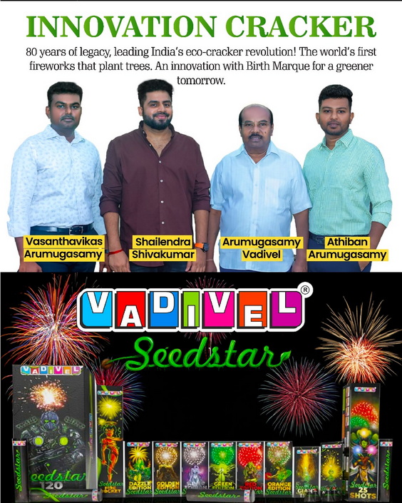 இந்தியாவின் நம்பர் 1 பட்டாசு பிராண்டான வடிவேல் பைரோடெக்ஸ் அறிமுகப்படுத்தியுள்ள உலகின் முதல் விதைப்பட்டாசான சீட்ஸ்டார் இந்திய சந்தையில் ஆதிக்கம் செலுத்துகிறது!