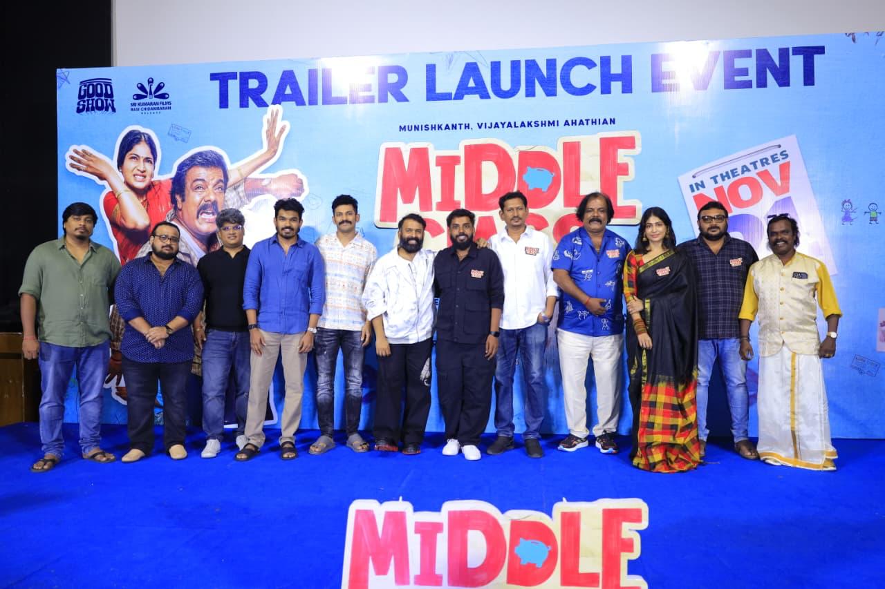 ஆக்ஸஸ் ஃபிலிம் ஃபேக்டரி & குட் ஷோ தயாரிப்பில் அறிமுக இயக்குநர் கிஷோர் முத்துராமலிங்கம் இயக்கத்தில் நடிகர்கள் முனீஷ்காந்த், விஜயலட்சுமி உள்ளிட்டப் பலர் நடிப்பில் உருவாகியுள்ள படம் ‘மிடில் கிளாஸ்’. இந்த மாதம் 21 ஆம் தேதி திரையரங்குகளில் வெளியாக இருக்கும் இந்தத் திரைப்படத்தின் டிரெய்லர் வெளியீட்டு விழா நடைபெற்றது.