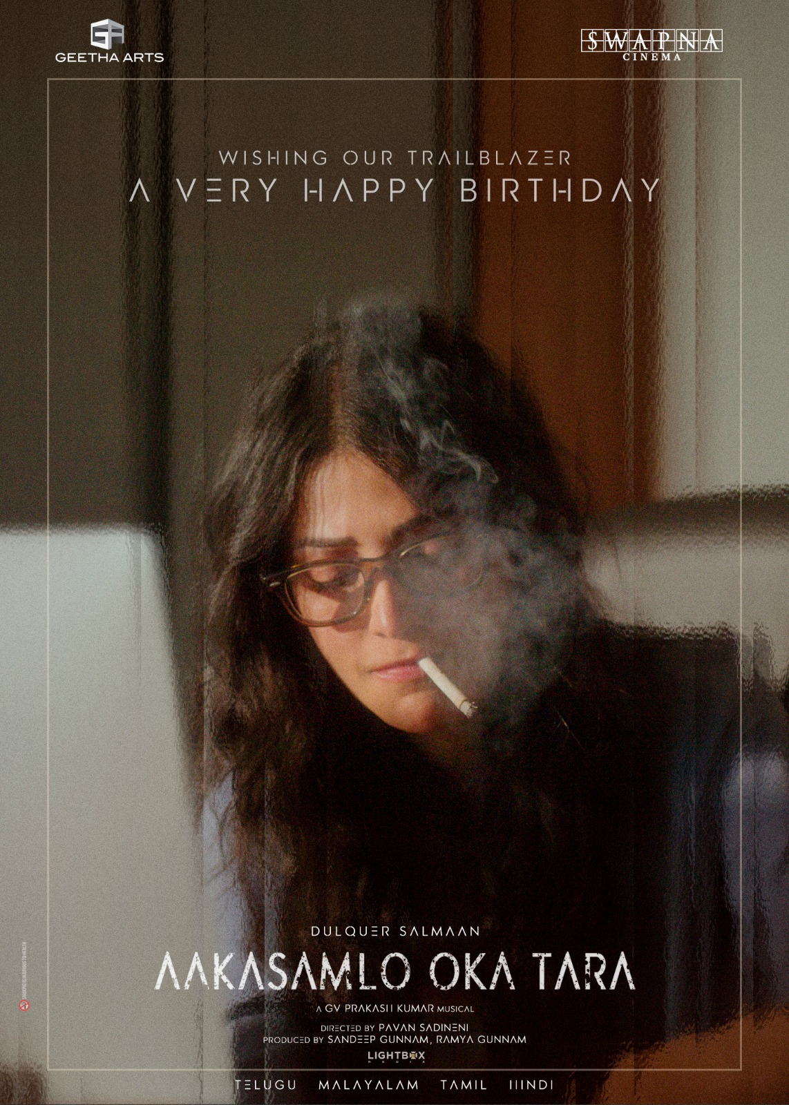 *Introducing Shruti Haasan from the world of Dulquer Salmaan’s Aakasamlo Oka Tara; Presented By Geetha Arts & Swapna Cinema, Produced By Sandeep Gunnam, Ramya Gunnam, Pan-India theatrical release in summer 2026*
