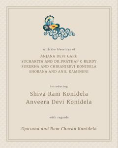 கொணிதெலா மற்றும் காமினேனி குடும்பங்கள் இந்த அழகான புதிய அத்தியாயத்தை வரவேற்கும் நிலையில், சிறிய சிவ ராம் மற்றும் அன்வீரா தேவியின் வருகை, அவர்களின் குடும்பத்தில் ஒன்றுபட்ட மகிழ்ச்சி, ஆனந்தம் மற்றும் ஆசீர்வாதங்களை கொண்டு வந்துள்ளது.
