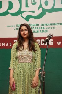என்னை அறிமுகப்படுத்திய குருநாதர் பாரதிராஜா சார் ‘தாய் கிழவி’யாக நான் நடித்திருப்பதை அவரால் பார்க்க முடியவில்லையே என்ற வருத்தம் எனக்கு நிறைய இருக்கிறது. சீக்கிரம் அவர் உடல்நலன் தேறி வந்து இந்தப் படம் பார்க்க வேண்டும் என்று கடவுளிடம் வேண்டுகிறேன். என்னை நடிகையாக்கிய என் அம்மா இந்தப் படத்தை பார்க்கவில்லையே என்ற வருத்தம் உண்டு. பெண் எம்.ஆர். ராதாவாக தான் இந்தப் படத்தில் நடித்திருக்கிறேன். நான் சினிமாவிற்குள் வந்தபோது என்னை அவமானப்படுத்தியவர்கள் நிறைய பேர் இருக்கிறார்கள். அவர்களுக்கெல்லாம் நான் இன்று பதில் சொல்கிறேன். நான் எம்.ஆர். ராதா மகள் என்று! வாய்ப்பிற்கு நன்றி”.