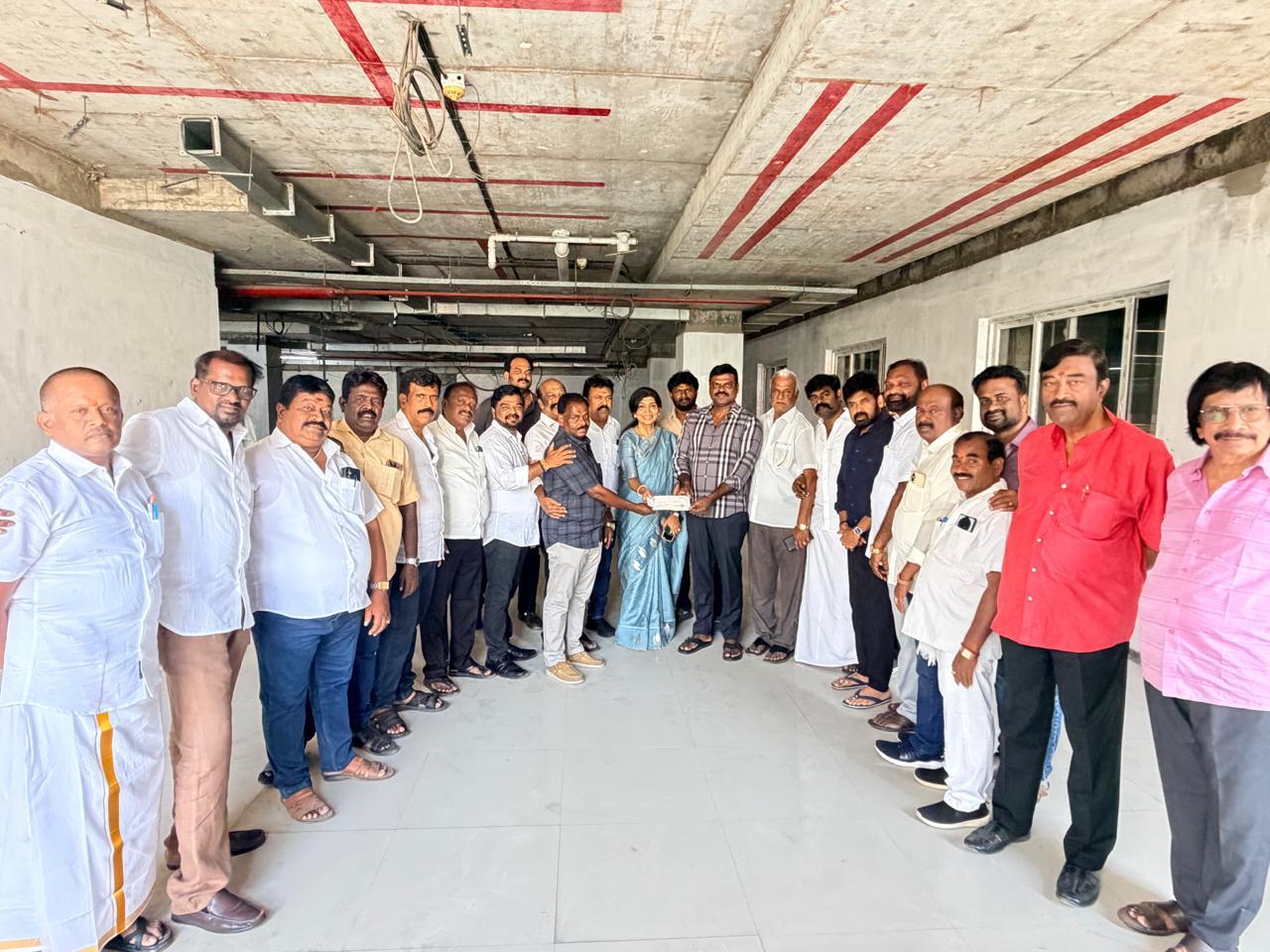 தமிழ் திரைப்பட தயாரிப்பாளர்கள் சங்கத்தின் தலைவர் திரு. GKM தமிழ்குமரன் அவர்கள் தலைமையில் இன்று தயாரிப்பாளர்கள் சங்கத்தின் கலந்தாய்வு கூட்டம் நடைபெற்றது. அப்பொழுது தமிழ் திரைப்பட தயாரிப்பாளர்கள் சங்கத்தின் நிரந்தர உறுப்பினர் திரு. மணிகண்டன் (MJD Production) அவர்கள் சங்கத்திற்கு ரூபாய். பத்து லட்சம் (Rs.10,00,000/-) நன்கொடையாக வழங்கியுள்ளார். இந்நிகழ்வில் தலைவர் திரு. GKM தமிழ்குமரன் அவர்களுடன், துணைத் தலைவர் திரு.ஆர்.கே. சுரேஷ், செயலாளர் திரு. ராதாகிருஷ்ணன், பொருளாளர் திரு.சுபாஷ் சந்திர போஸ், இணைச் செயலாளர் திருமதி.சுஜாதா விஜயகுமார் மற்றும் செயற்குழு உறுப்பினர்கள் பலரும் கலந்து கொண்டனர்.