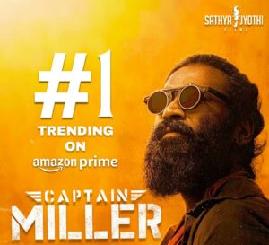 அமேசான் ப்ரைம் தளத்தில் உலகளவில் புதிய சாதனைகள் படைக்கும் “கேப்டன் மில்லர்” திரைப்படம்