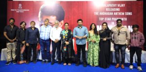 ‘டாப் ஸ்டார்’ பிரசாந்த் கதையின் நாயகனாக முதன்மையான கதாபாத்திரத்தில் நடித்திருக்கும் ‘அந்தகன் – தி பியானிஸ்ட்’ திரைப்படத்தினை ரசிகர்களிடத்தில் பிரபலப்படுத்தும் வகையில் இசையமைப்பாளர் சந்தோஷ் நாராயணன் இசையில், இசையமைப்பாளரும், பின்னணி பாடகருமான அனிருத் மற்றும் ‘மக்கள் செல்வன்’ விஜய் சேதுபதி ஆகியோர் பின்னணி பாட, ‘அந்தகன் ஆந்தம்’ எனும் ப்ரமோ பாடல் தயாராகி இருக்கிறது. இந்த பாடலின் உள்ளடக்கத்தை உருவாக்கி, காட்சிப்படுத்தியிருக்கிறார் ‘நடன புயல்’ பிரபுதேவா. இந்த பாடலை தளபதி விஜய் வெளியிட்டு, பட குழுவினருக்கு வாழ்த்து தெரிவித்திருக்கிறார்.