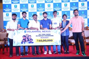 வேலம்மாள் நெக்ஸஸ் செஸ் ஒலிம்பியாட் தங்கப் பதக்கம் வென்றவர்களைக் கொண்டாடுகிறது
