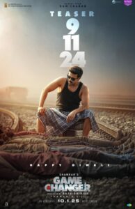 நவம்பர் 9 ஆம் தேதி கேம் சேஞ்சர் படத்தின் டீசர் வெளியாகுமென அறிவிக்கப்பட்டிருப்பது, ரசிகர்களிடையே பெரும் உற்சாகத்தை ஏற்படுத்தியுள்ளது. டீசர் அறிவிப்பு போஸ்டரே படத்தின் பிரம்மாண்டத்தை சுட்டிக்காட்டுவதாக அமைந்துள்ளது, ராம் சரண் முரட்டுத்தனமான அவதாரத்தில், லுங்கி மற்றும் பனியனுடன் ஒரு ரயில் பாதையில் அமர்ந்திருக்கும் போஸ்டர், ரசிகர்களுக்கு அற்புதமான தீபாவளி விருந்தாக அமைந்துள்ளது.