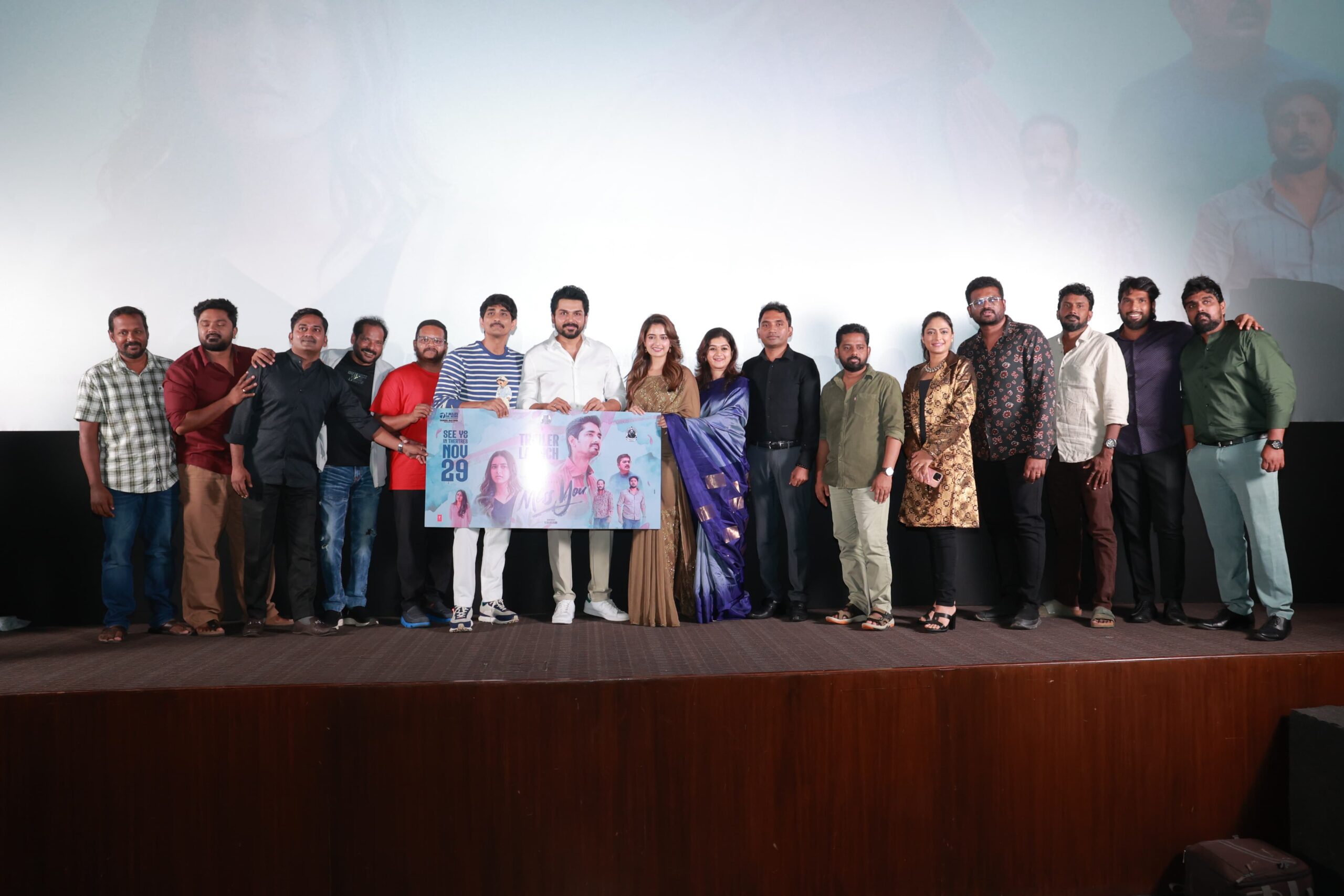 ‘மிஸ் யூ’ திரைப்படம் வரும் நவ- 29ல் திரையரங்குகளில் வெளியாகிறது. தமிழ் திரையுலகின் முன்னணி தயாரிப்பு நிறுவனமான ரெட் ஜெயண்ட் மூவிஸ் நிறுவனம் இப்படத்தைத் தமிழகமெங்கும் வெளியிடுகிறது. இப்படத்தின் ட்ரெய்லர் மற்றும் இசை வெளியீட்டு விழா இன்று மாலை சென்னை சத்யம் திரையரங்கில் நடைபெற்றது.